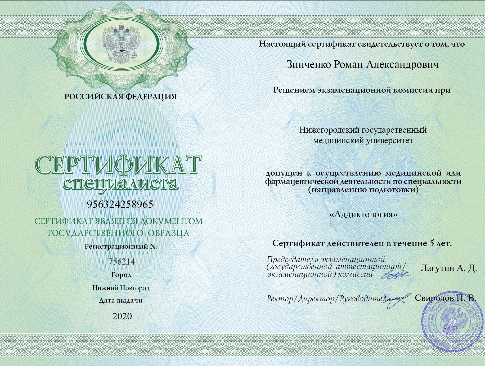 Зинченко Роман Александрович — молодой и энергичный аддиктолог, специализирующийся на лечении зависимостей. Окончил Российский университет дружбы народов в 2019 году, получив диплом по специальности «Лечебное дело». В 2020 году прошел специализацию по аддиктологии, а в 2021 году завершил переподготовку по психотерапевтическим методам лечения зависимостей.